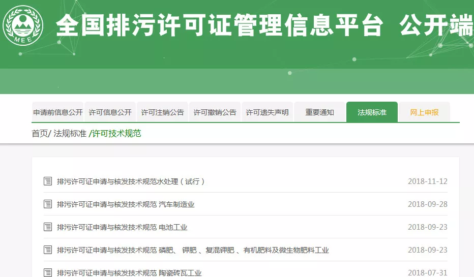 查看行業(yè)技術(shù)規(guī)范信息,請通過生態(tài)環(huán)保部官方網(wǎng)址:全國排污許可證管理信息平臺-公開端,網(wǎng)址為http://permit.mee.gov.cn/。