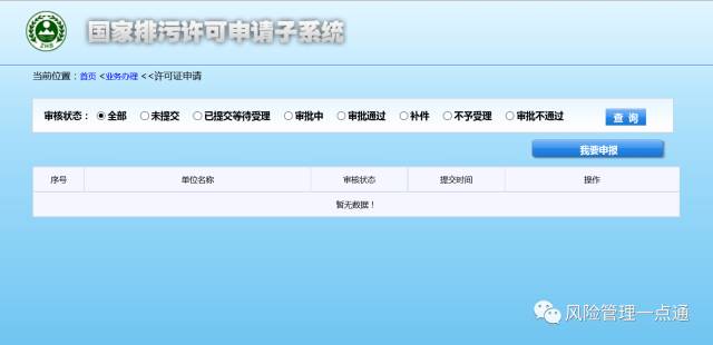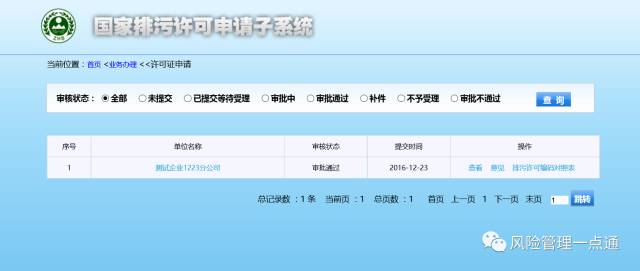 ? 審批中:排污單位的許可證業(yè)務申請已受理,正在審批環(huán)節(jié)。