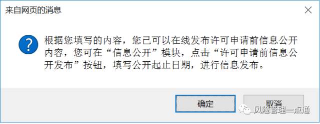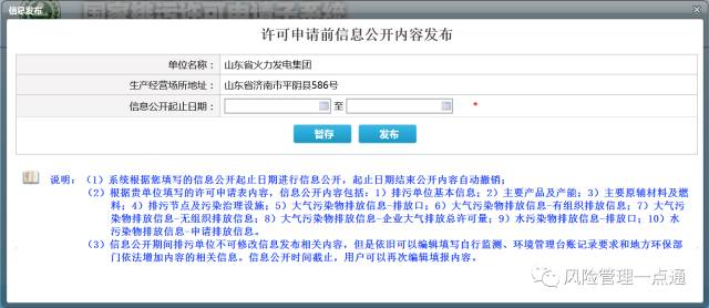 ? 點擊“許可申請前信息公開發(fā)布”按鈕,填寫發(fā)布起止時間。