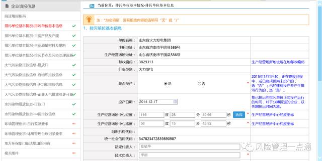 第三步: 根據(jù)填報頁面左側(cè)導航,一步一步填寫許可證申請信息,一個頁面填寫完成后,點擊頁面下方的“下一步”按鈕,填報下一頁的內(nèi)容,也可以點擊“暫存”按鈕,保存當前填報信息。? 申請?zhí)顖蟀?/span>14個頁面的內(nèi)容,分別為:排污單位基本情況;排污單位基本情況-主要產(chǎn)品及產(chǎn)能;排污單位基本情況-主要燃料及原輔材料;排污單位基本情況-排污節(jié)點、污染物及污染治理設施;大氣污染物排放信息-排放口;大氣污染物排放信息-有組織排放信息;大氣污染物排放信息-無組織排放信息;大氣污染物排放信息-企業(yè)大氣排放總許可量;水污染物排放信息-排放口;水污染物排放信息-申請排放信息;環(huán)境管理要求-自行監(jiān)測要求;環(huán)境管理要求-環(huán)境管理臺賬記錄要求;地方環(huán)保部門依法增加的內(nèi)容;相關(guān)附件。? 請按照頁面順序進行填報。在填寫主要產(chǎn)品及產(chǎn)能,主要燃料及原輔材料,排污節(jié)點、污染物及污染治理設施相關(guān)表單內(nèi)容時,系統(tǒng)會默認當前填報內(nèi)容為企業(yè)注冊時填報的行業(yè)類別下的內(nèi)容(填寫時可選擇的下拉菜單為注冊時填寫行業(yè)的下拉菜單),若當前申請單位涉及多個行業(yè),請先選擇企業(yè)所在行業(yè),再依次進行填報。(3)主要產(chǎn)品及產(chǎn)能信息表中,生產(chǎn)設施和產(chǎn)品都與主要工藝相對應,請分別添加主要工藝,及其對應的生產(chǎn)設施和產(chǎn)品。? 生產(chǎn)設施編號、污染治理設施編號、排污口編號為企業(yè)自行編制或填寫當?shù)丨h(huán)保部門統(tǒng)一印發(fā)的編號。請注意相同的設施和排放口填寫相同的編號,不同的設施和排放口填寫不同的編號,一次填寫一個編號,請勿將多個編號寫在一個文本框內(nèi)。? 為了滿足各地管理要求的差異,所有表單中都新增了其他信息列或備注信息文本框,若有對應表格中無法囊括的信息,可根據(jù)實際情況填寫在其他信息列或備注信息文本框中。? 排污單位填寫完(1)排污單位基本信息;(2)主要產(chǎn)品及產(chǎn)能;(3)主要原輔材料及燃料;(4)排污節(jié)點及污染治理設施;(5)大氣污染物排放信息-排放口;(6)大氣污染物排放信息-有組織排放信息;(7)大氣污染物排放信息-無組織排放信息;(8)大氣污染物排放信息-企業(yè)大氣排放總許可量;(9)水污染物排放信息-排放口;(10)水污染物排放信息-申請排放信息表格相關(guān)信息后,可在本系統(tǒng)進行許可申請前信息公開,系統(tǒng)也會給予填報提示。