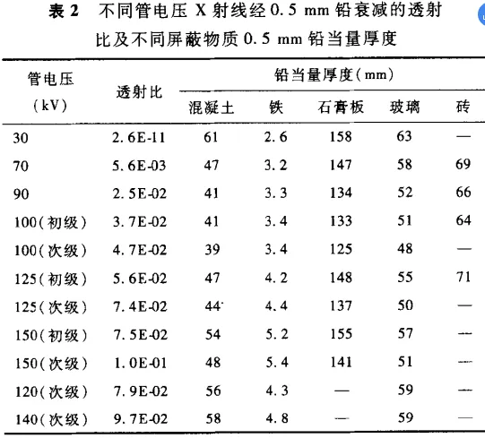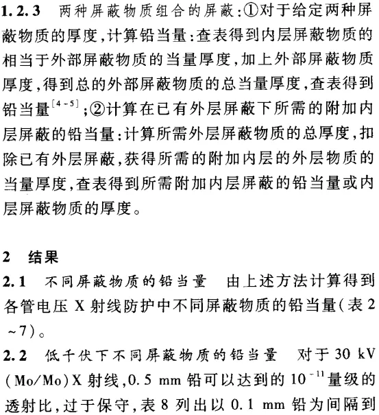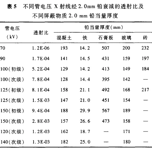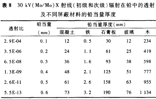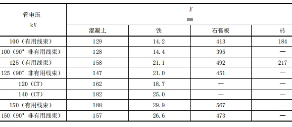 表 C.5 不同屏蔽物質(zhì)等效鉛當(dāng)量厚度(2mmPb)