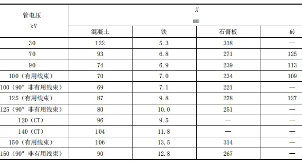 表 C.4 不同屏蔽物質(zhì)等效鉛當(dāng)量厚度(1mmPb)