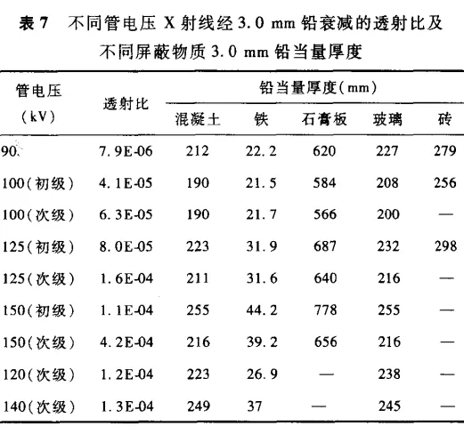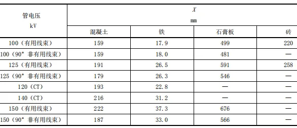 表 C.7 不同屏蔽物質(zhì)等效鉛當(dāng)量厚度(3 mmPb)
