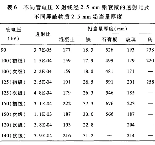 表 C.6 不同屏蔽物質(zhì)等效鉛當(dāng)量厚度(2.5 mmPb)