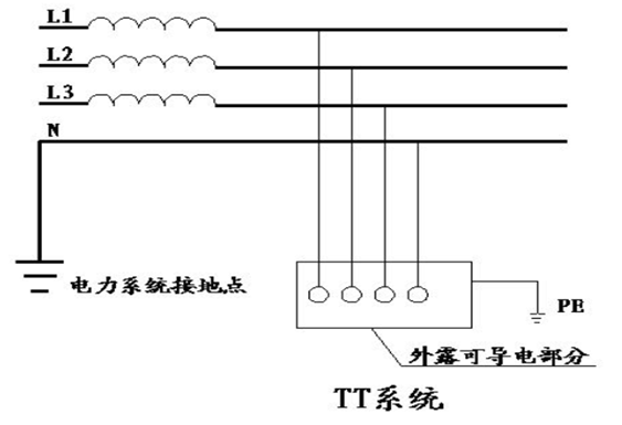TT系統(tǒng)的電源中性點(diǎn)直接接地,用電設(shè)備的金屬外殼直接接地,且與電源中性點(diǎn)的接地?zé)o關(guān)。第一個(gè)“T”表示配電電網(wǎng)接地,第二個(gè)大寫英文字母“T”表示電氣設(shè)備金屬外殼接地。TT系統(tǒng)是供電部門規(guī)定城市公用低壓電網(wǎng)向用戶供電的接地系統(tǒng),廣泛應(yīng)用于城鎮(zhèn)、農(nóng)村居民區(qū)、工業(yè)企業(yè)和由公用變壓器供電的民用建筑中。