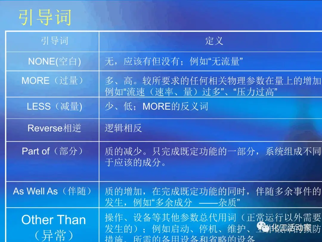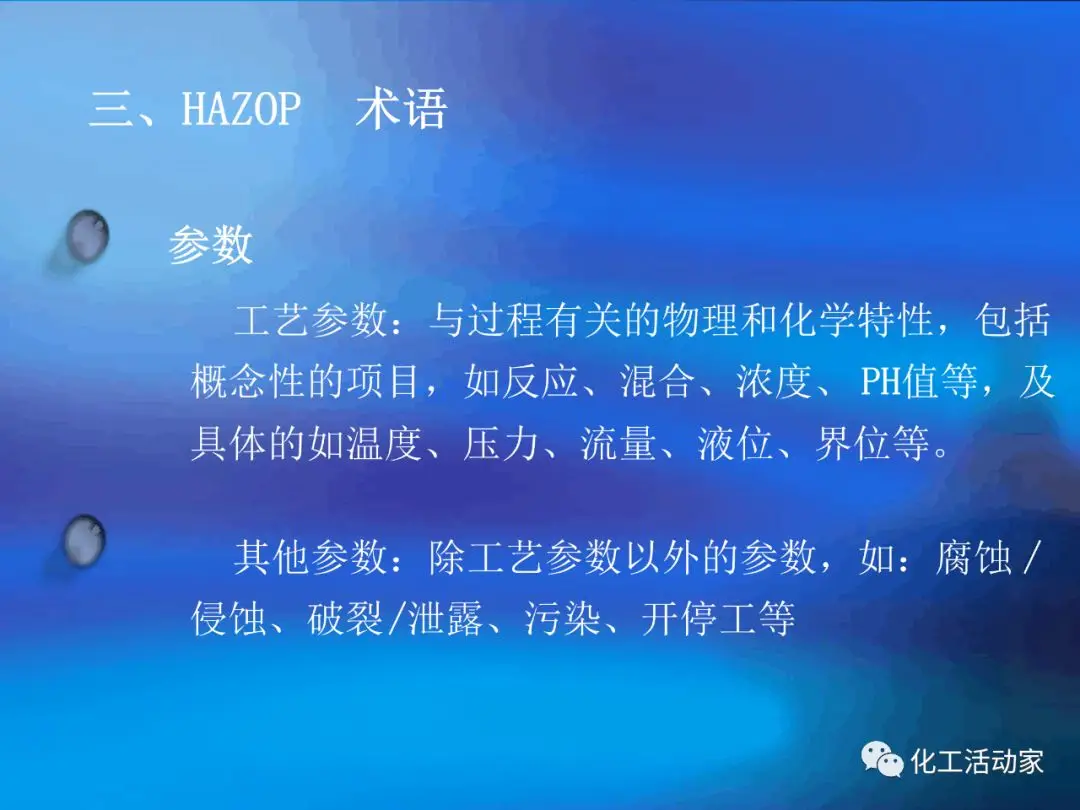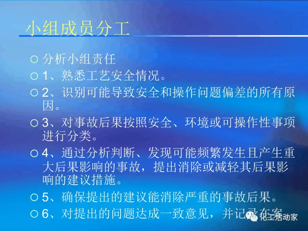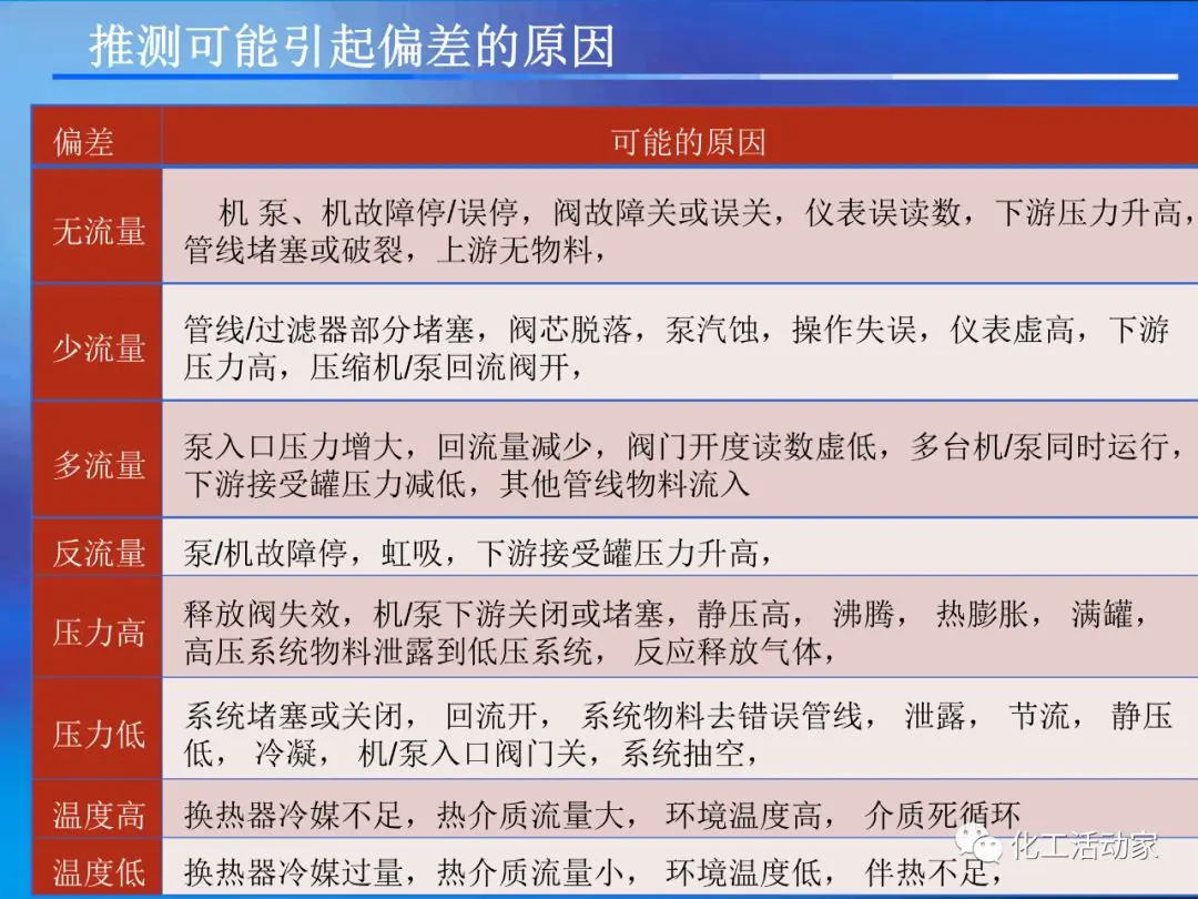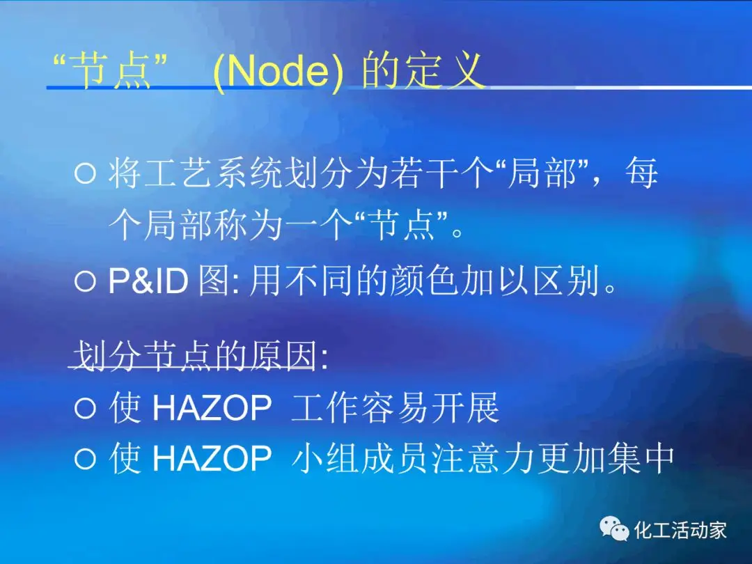HAZOP分析的基本假設(shè)是“當(dāng)實(shí)際流程在設(shè)計(jì)所允許的最大變動范圍內(nèi)運(yùn)行時,不存在出現(xiàn)危險(xiǎn)和操作問題的可能性”。這是每個HAZOP成員必須牢牢掌握的。