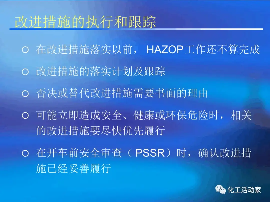 ④進(jìn)行HAZOP工作;