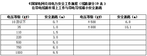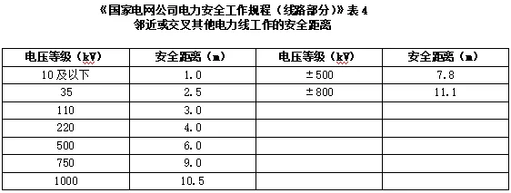 若在帶電桿塔上進(jìn)行測量、防腐、巡視檢查、緊桿塔螺栓、清除異物等工作時,則可開具電力線路第二種工作票進(jìn)行。相關(guān)工作中應(yīng)使用絕緣無極繩索,風(fēng)力不大于5級,并設(shè)有專人監(jiān)護(hù)。另外,在同桿塔架設(shè)有多回線路的,若對其中一回停電線路進(jìn)行接地時,應(yīng)采取措施防止接地線擺動,確保安全距離在L2紅線右邊區(qū)域(大于表3)。(1)若開展砍剪樹木等工作,應(yīng)保持安全距離在此范圍(推薦),使用派工單工作即可;否則,應(yīng)結(jié)合各紅線安全距離控制要求,采用電力線路第一種工作票(推薦,對設(shè)備停電)、第二種工作票或帶電作業(yè)工作票的方式進(jìn)行。若在桿塔最下層導(dǎo)線以下的部分從事桿塔號涂寫、標(biāo)志牌安裝、線路巡視等運維工作時,同樣是使用派工單即可。(2)若開展線路停電檢修,但與另一回帶電線路交叉或接近時,應(yīng)確保安全距離保持在此范圍(L3紅線右邊),且作業(yè)的導(dǎo)地線、絞車等牽引工具應(yīng)接地。在帶電線路下方進(jìn)行檢修施工(松緊、降低或架設(shè)導(dǎo)地線等),應(yīng)采取防導(dǎo)線跳動或過牽引而接近和突破右紅線的措施;在帶電線路上面進(jìn)行檢修施工(放松、架設(shè)導(dǎo)地線,更換絕緣子等),更應(yīng)采取充分討論后經(jīng)工區(qū)批準(zhǔn)的安全措施,并有防止導(dǎo)、地線脫落、滑跑的后備保護(hù)措施。當(dāng)然,若確實無法保證表4的安全距離(來到L3線左邊),則另一回帶電線路必須做好停電、接地的安全措施。(3)需要特別注意的是,同桿塔架設(shè)多回線路中部分線路停電檢修,作業(yè)人員對帶電導(dǎo)線最小距離不得突破L2紅線(表3),在停電線路一側(cè)吊起或向下放落工具、材料時,應(yīng)使用絕緣無極繩圈傳遞,且物件與帶電導(dǎo)線的安全距離不得突破L3紅線(表 4)。有同桿架設(shè)有10千伏 及以下帶電線路的,必須禁止另一回線路的停電施工(松線、放線、緊線、更換桿塔和橫擔(dān)),即便全是絕緣導(dǎo)線,也同樣禁止;但當(dāng)滿足L3紅線安全距離要求(表 4)且采取絕緣隔離等可靠安全措施的情況下,可謹(jǐn)慎進(jìn)行下層線路的登桿停電檢修工作,并設(shè)專人做好監(jiān)護(hù)。(4)放、撤線作業(yè)活動中,若需搭設(shè)跨越架作為防護(hù)措施的,其搭設(shè)過程中和完畢后都要與被跨線路保持足夠的安全距離,確保在圖中L3紅線右邊區(qū)域(不小于表4),否則只能采取停電措施。對于起重設(shè)備的檢修施工作業(yè),圖中僅設(shè)定一條紅線,對應(yīng)《線路安規(guī)》表19。