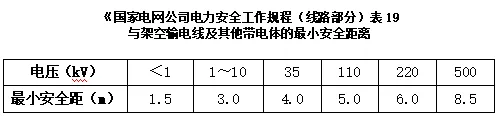 作業(yè)時,起重機臂架、吊具、輔具、鋼絲繩及吊物等與架空輸電線及其他帶電體的最小安全距離不準(zhǔn)小于表19,即必須在紅線右邊。此時,應(yīng)設(shè)專人做好監(jiān)護(hù)工作。倘若長期或頻繁地靠近帶電體,考慮到工作人員難以集中精力,以及起重作業(yè)時的搖擺晃動等因素,安全風(fēng)險很大,應(yīng)采取必要的隔離防護(hù)措施,例如加裝跨越架、隔離墻,使用距離測量儀器、限高繩等等。另外,根據(jù)《線路安規(guī)》,在帶電線路、設(shè)備附近立、撤桿塔時,以及使用纜風(fēng)繩時,桿塔、拉線、臨時拉線、纜風(fēng)繩等也應(yīng)與帶電線路、設(shè)備保持“表19”規(guī)定的安全距離(紅線右邊)。