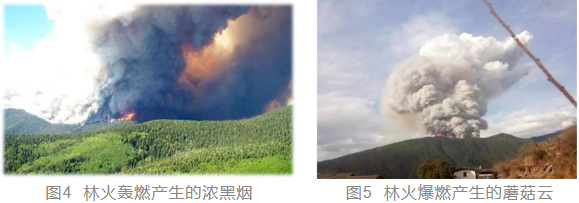 (1)燃燒特征不同?!稗Z燃”發(fā)生時(shí),其外在表現(xiàn)為濃黑煙夾雜著火焰迅速向四周擴(kuò)散(如圖4所示);“爆燃”發(fā)生時(shí),其外在表現(xiàn)為向上猛烈升騰的對(duì)流柱(蘑菇云)及向四周擴(kuò)散的火焰(如圖5所示)。